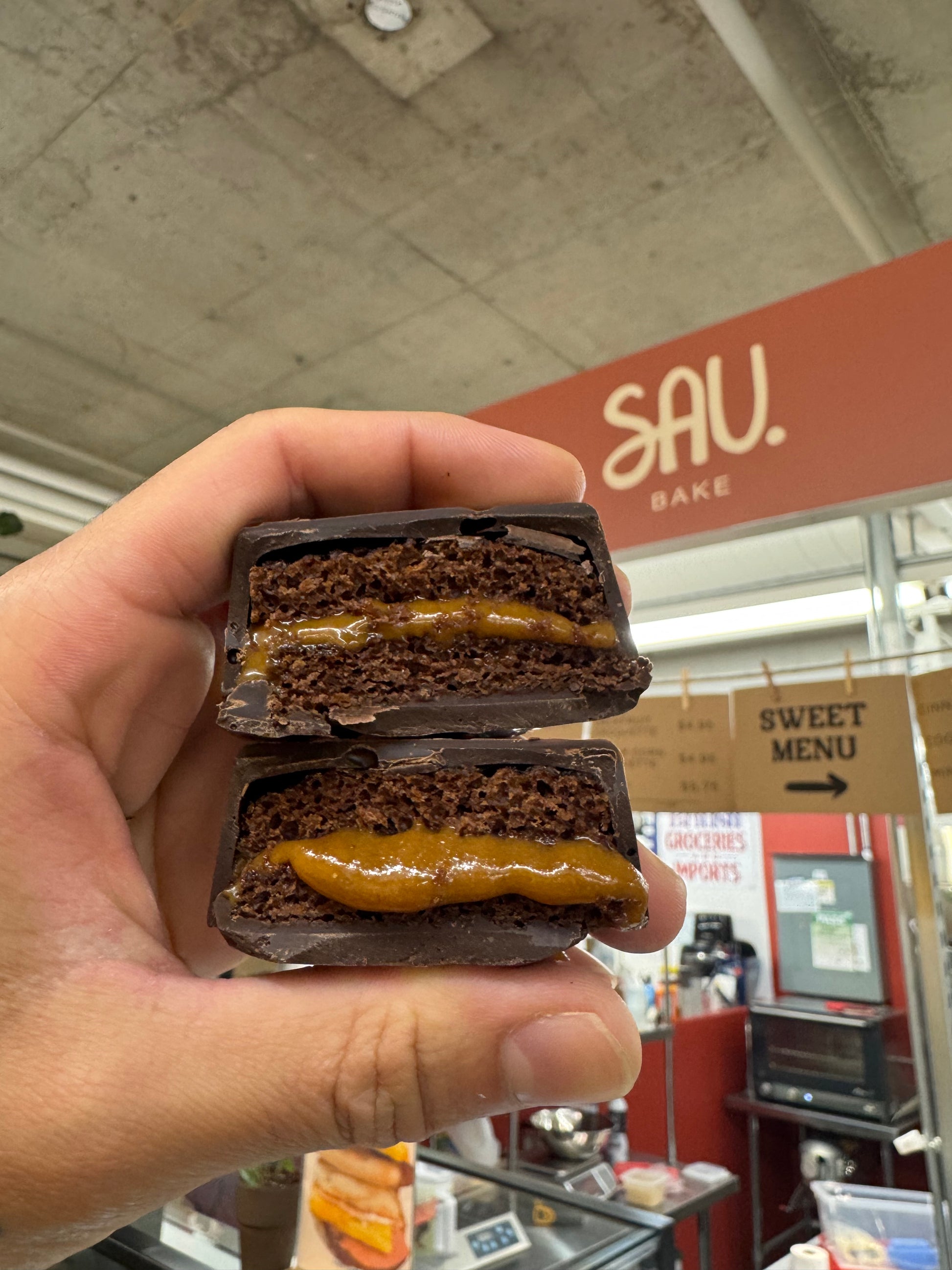 A rich 4-spice chocolate cake layered with creamy dulce de leche, molded in smooth semi-sweet chocolate for the perfect balance of warmth and indulgence.